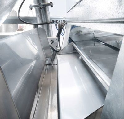 Hot galvanized filter press with stainless steel cover and drain channel.