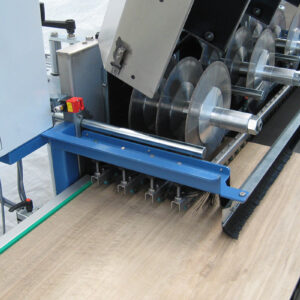 On the shaft of the motor spindle, it is possible to mount four cutting blades divided by spacers and flanges in order to obtain different sizes and multiple cuts. The motorised conveyor belt improves the working quality and allows the production of pieces continuously. The guide positioned on the motor side and the pressor bar guarantees strong stability and a high level of finish during the working phase. All adjustments are facilitated by the use of hand wheels and they do not require the use of tools. A lateral roller allows the laying of big sizes to be worked.