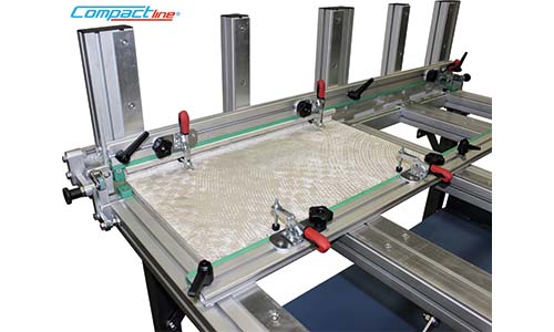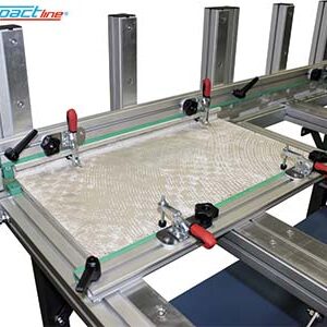 Gluing bench for steps. Create “straight edge” or with “L-shaped” elements obtained from the slabs cut at 45 degrees. It is necessary to assemble the steps with precision and reduce working time to a minimum. Maximum working format 60x120cm.
