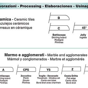 MPM are automatic machines for working with different grinding wheels contemporaneously, reducing the working time. Ideal for processing skirting boards, jolly, plinths, thresholds, windowsills, flat edges, bullnose and half bullnose of marble, granite, porcelain, single and double firing, agglomerates, etc.
